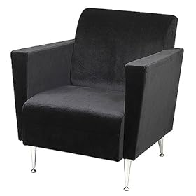 This black club chair is soft, stylish and sophisticated. Featuring a fashionable, high-arm design with 4 chrome legs, it is covered in plush velvet and treated with a fabric guard water repellant process. Perfect in the living room or den, it makes a great accent and a comfortable place for reading and relaxing. Imported. 28Hx27Wx30D".